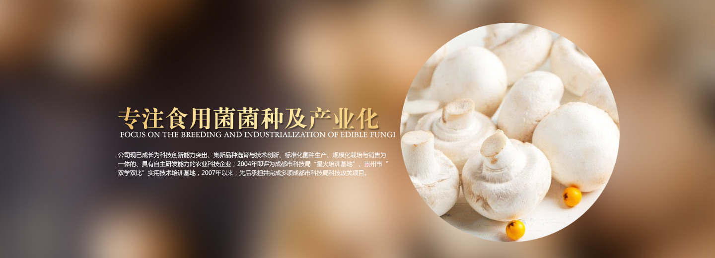 公司现已成长为科技创新能力突出、集新品种选育与技术创新、标准化菌种生产、规模化栽培与销售为一体的、具有自主研发能力的农业科技企业;在崇州市桤泉镇生建村建有占地10余亩的菌种生产厂,食用菌示范栽培基地2500亩;已建成年产食用菌菌种500万瓶(袋)的生产线,公司技术力量雄厚,长期与国内著名的微生物、食用菌...{详细}